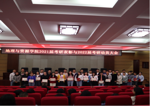按照预定方案,首先,由副院长罗光杰作2021届考研工作总结报告。罗光杰对2021届学子们在考研过程中取得的优异成绩表示祝贺,激励地资学子砥砺前行,脚踏实地的走好人生的每一步路。学院党总支书记吴亚平对总结报告予以肯定,高度赞赏学院2021届考研工作成绩,并提出2022届学院考研工作奋斗目标,殷切期望2022届考研工作再创佳绩。紧接着罗光杰宣读了《beat365在线唯一官网登录关于表彰2021届”考研先进集体和个人”的决定》。资源环境系获得学院“考研工作先进集体”荣誉,罗洋、罗绪强、张淑卿、郑延丽、杨鸿雁、刘丹丹6位老师获得学院“考研工作先进个人”荣誉,赵升等36名同学获得学院“考研先进个人”荣誉。