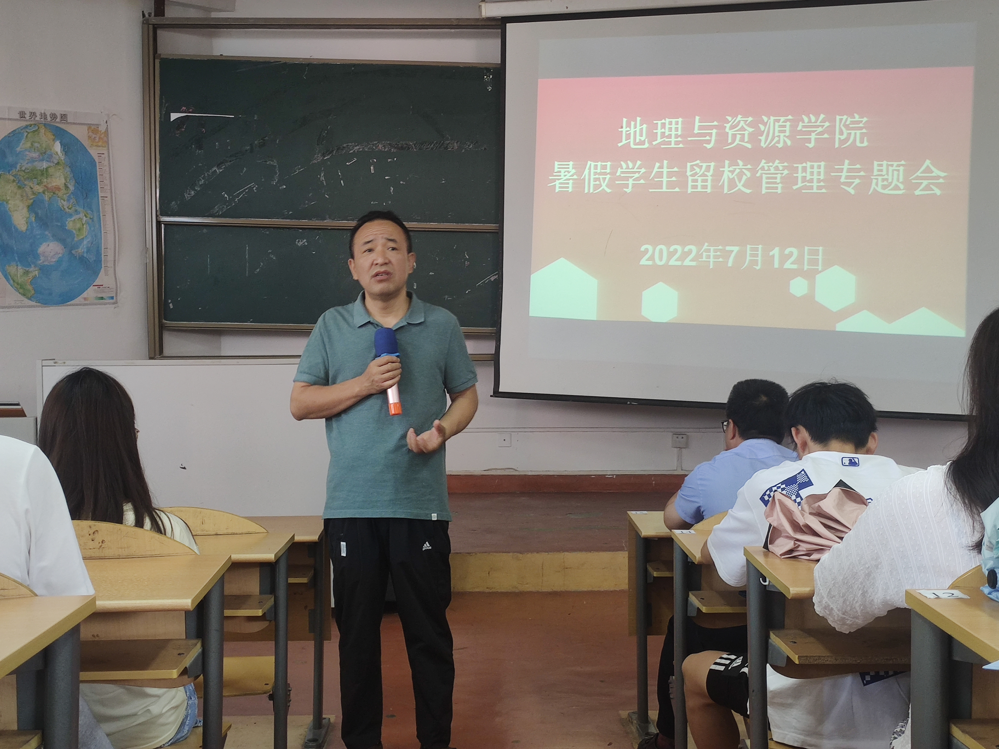 会上,吴亚平指出,留校工作的各项安排是以为同学们创造更好的学习条件为目的,希望同学们留校期间服从学院管理和学校管理,珍惜暑假宝贵时间,将时间真正用在学习上;期望同学们在校度过一个安全充实的暑假。罗绪强强调,同学们在校期间要提高安全防范意识,提升自我管理能力;同时要求同学们要提高政治敏感度,对同学们提出自律、自信、自强的期望。最后,王万强强调了暑期学生留校的具体管理要求,希望同学们严格遵守学校、学院的相关管理制度,自觉落实好各项要求,严报归寝制度,严格落实疫情防控每日健康监测打卡;珍惜青春时光,朝着自己的目标刻苦努力,不懈奋斗。