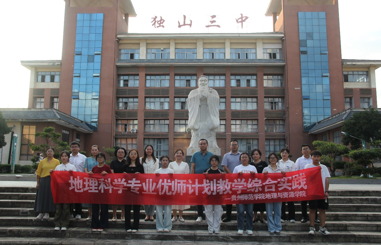 实践活动以“提升优师生教学技能与实践能力”为中心,分为地理师范生教育见习研习、实习试讲两个环节。首先,见习研习实践活动赴贵州省黔南州龙里县民族完全中学、黔南州惠水县第四中学、贵州省独山高级中学观摩三位2021级实习生授课,课后开展评课与教学经验分享探讨会,三位实习生在会上分别分享了他们的课程设计思路,随后优师计划生表达对课堂的感想与评价,最后由几位带队老师就地理师范生技能培养、中学地理授课模式与教学方法等进行点评。会上,郑建教授多次提到:“地理教师在地理课堂教学中应该加强教学活动的设计感、层次感,让学生有更多的获得感、自豪感与享受感,强化育人过程,重视对学生的人格培养。” 其次,实习试讲活动在第二天下午由一名优师计划学生与独山三中两名教师进行了“同课异构”教学活动。优师计划学生与带队老师们进行观摩。在活动结束后优师计划学生与三中教师进行交流与学习。随后开展了评课会议,由郑建教授对三节课进行了总结与评价。