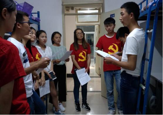 9月15日晚上,地理与旅游学院学生党支部全体党员走进2017级新生宿舍,开展“党员进寝室”主题党日活动,在慰问新生的同时,从“党的知识、生活经验、学习建议以及个人安全”等方面进行了交流。