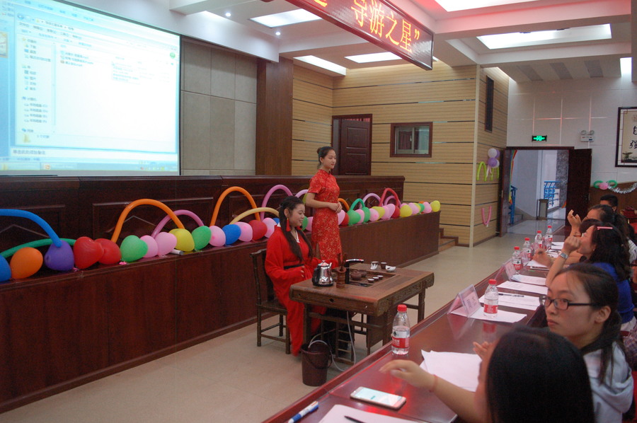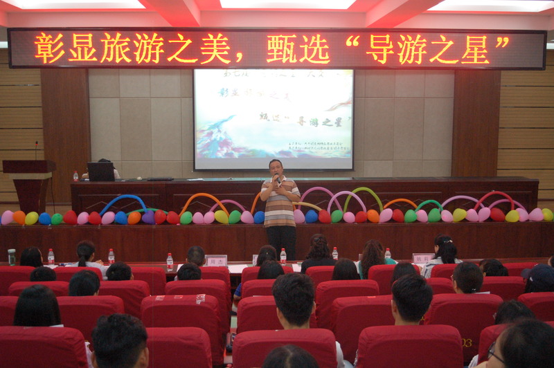 6月14 日18点,由beat365在线唯一官网登录团委主办、地理与旅游学院基层团委学生会承办的“第七届导游之星”决赛在明义楼道德讲堂圆满完成。地理与旅游学院党委书记吴亚平、校团委副书记傅小芳、学校相关职能部门嘉宾以及其他兄弟社团代表出席观看了本次大赛,评委由地旅学院专业教师盖媛瑾、周杰、姚莉、刘静等担任。