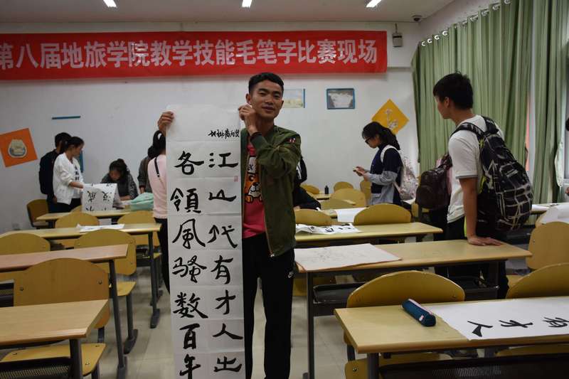 本次比赛分两个阶段进行。4月13日,进行了“三字”比赛。在比赛现场,每一位参赛者以笔为媒、以黑板和纸为介,向大家展示着他们各自的风采,其中有工整的粉笔字、楷法谨严的钢笔字、以及入木三分的毛笔字;4月19日,进行了版图、教学技能项环节。为了保证比赛的公平公正及扩大赛事影响力,评委由教师及部分学生共同担任,老师评分占比百分之八十,学生评分占比百分之二十。在比赛过程中,每一位选手都以最好的状态向大家娓娓道来,阐明课程主题,旁征博引案例。当他们说课、试讲及答辩完毕后,评委们积极地点评了大家有待改进之处并给予每位参赛学生指导性的建议,使同学们受益匪浅。