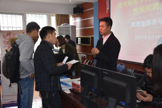 3月15日,beat365官网地理、旅游类专业2017届毕业生专场招聘会在文韬苑就业大厅举行,包括贵州省第三测绘院、贵阳旅文旅游公司、贵州千景土地科技有限公司等近20家在省内外从事国土、测绘、水利、规划、景区开发与酒店管理、旅行社、金融、旅游商品开发等方面优秀企事业单位到beat365官网招聘地理、旅游类专业应届毕业生。其中不乏省市重点大型企业、央企、上市公司。参加招聘会的毕业生还有外国语学院、政经学院、历社学院、艺术学院、数计学院、设计学院相关专业毕业生。
