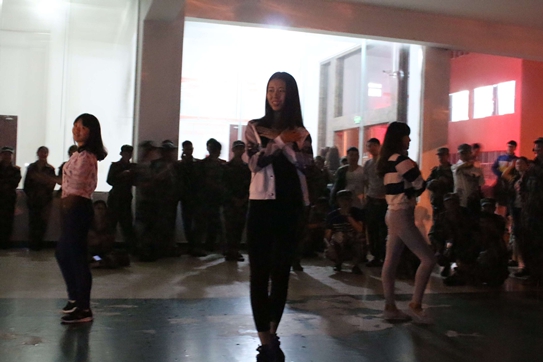 beat365官网2015级新生在学校的统一安排下,军训已进入第十天,大家都处于比较疲惫的状态。为了给beat365官网新生加油打气,在学院统一领导下,院学生会组织了“文艺下连队”新生军训慰问演出。9月20日,院学生会全体成员来到逸夫楼架空层慰问了正在军训的地旅学院2015级全体新生。虽然天空渐黑,伴着小雨,但也没有阻挡学长学姐看望新生的急切之情。
