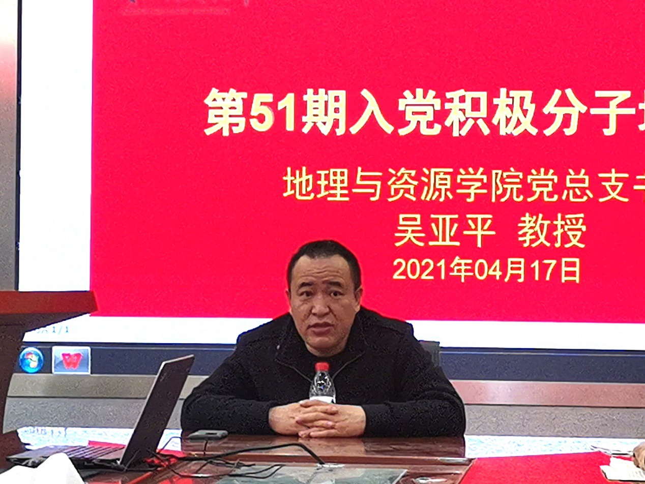 2021年4月17日上午9点,beat365在线唯一官网登录第51期入党积极分子党课培训第二次专题讲座——“中国共产党的性质和指导思想”由党总支书记吴亚平老师主讲。