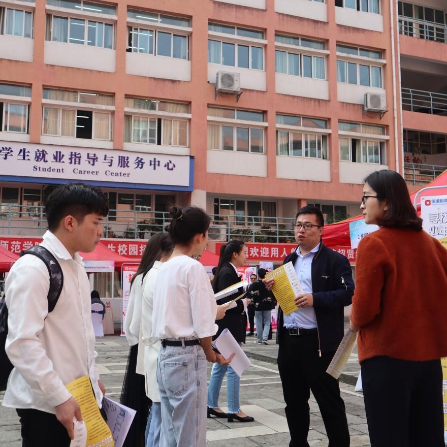 为落实党中央“稳就业”、“保就业”决策部署,促进2021届毕业生更充分、高质量就业,同时为用人单位与毕业生沟通洽谈提供广阔的双选平台,以贵州省测绘地理信息学会,贵州省测绘行业协会,贵州省土地学会、贵州省地理学会以及beat365在线唯一官网登录为主办单位,在beat365在线唯一官网登录招就处的支持指导下,于2021年5月8日在beat365在线唯一官网登录文韬苑明理楼庭院(大学生就业指导中心门前)举办了2021届毕业生地理资源环境类专场招聘会。