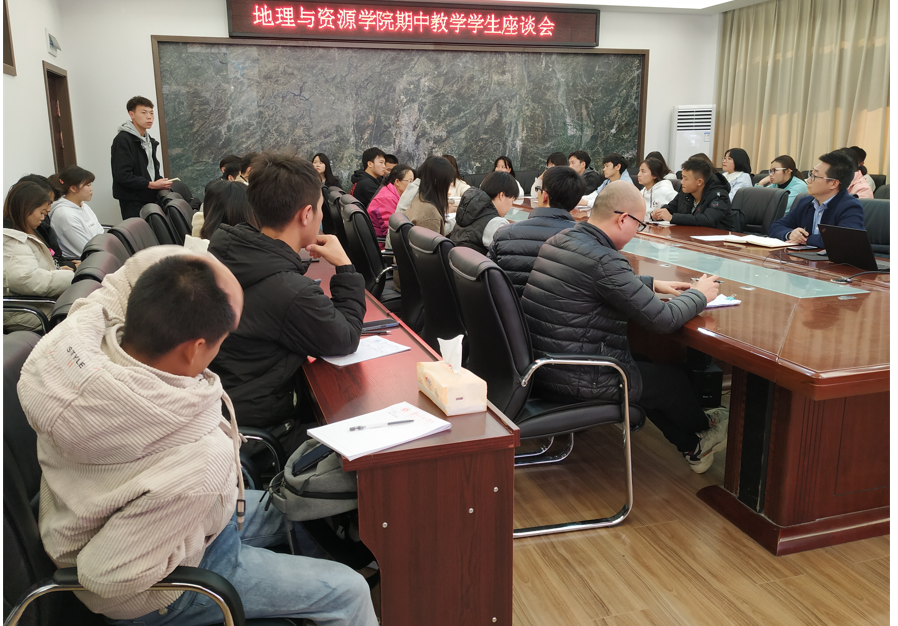 各年级的班委积极发言反馈了在教学过程中遇到的困难和问题,如学习跟不上进度、课程太满、大教室课桌椅损坏较多等教学问题,罗绪强、邓家彬及各位老师一一为学生或解答或给出积极建议。