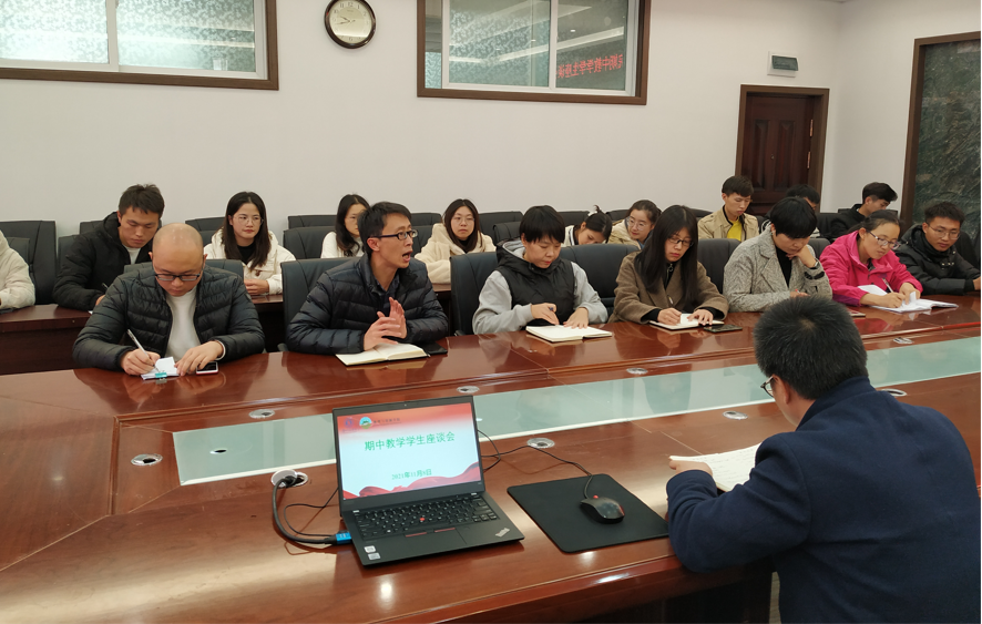 为进一步提升教学质量,更好地为学生服务,11月8日下午,beat365在线唯一官网登录在宁静楼325会议室就本学期的课程设置预安排、教师教学方法和教学手段、教学服务与管理、教学设施设备等方面进行了2021-2022学年度第一学期期中教学工作学生座谈会。院长罗绪强、教学负责人邓家彬、辅导员郜红娟、刘丹丹、韩默然,徐秀月、赵志猛、况江等老师及各班班委参加了此次会议。会议由邓家彬主持。