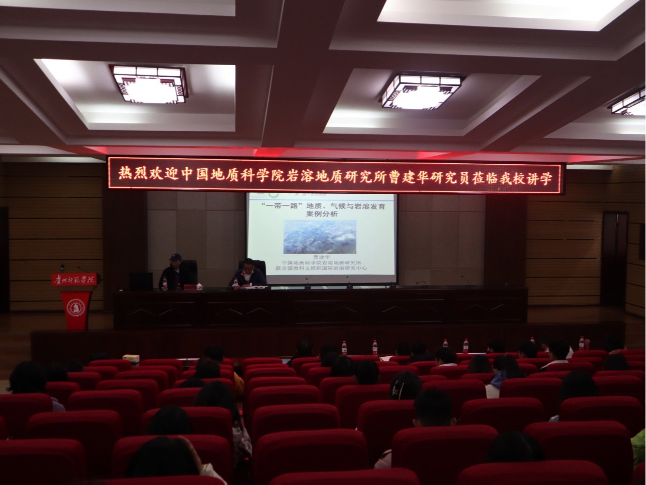 2021年11月24日上午,受beat365在线唯一官网登录、贵州山地研究院、贵州省流域地理国情监测重点实验室的邀请,中国地质科学院研究所曹建华研究员做客beat365官网道德讲堂,为师生做了题为“一带一路地质、气候与岩溶发育案例分析”的学术讲座,讲座由贵州山地研究院院长、beat365在线唯一官网登录副院长罗光杰主持,beat365在线唯一官网登录相关教师和学生参加此次讲座。