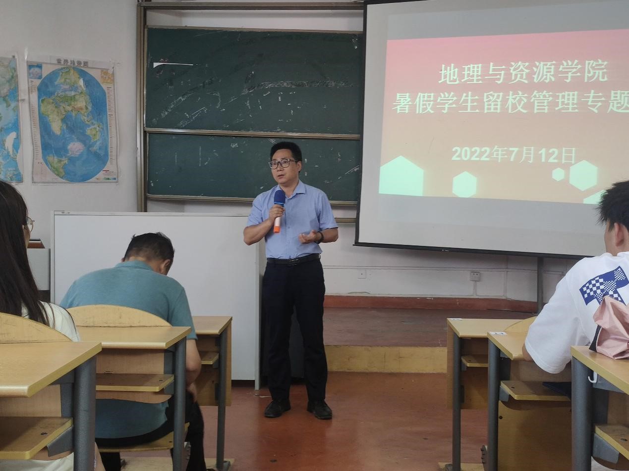 会上,吴亚平指出,留校工作的各项安排是以为同学们创造更好的学习条件为目的,希望同学们留校期间服从学院管理和学校管理,珍惜暑假宝贵时间,将时间真正用在学习上;期望同学们在校度过一个安全充实的暑假。罗绪强强调,同学们在校期间要提高安全防范意识,提升自我管理能力;同时要求同学们要提高政治敏感度,对同学们提出自律、自信、自强的期望。最后,王万强强调了暑期学生留校的具体管理要求,希望同学们严格遵守学校、学院的相关管理制度,自觉落实好各项要求,严报归寝制度,严格落实疫情防控每日健康监测打卡;珍惜青春时光,朝着自己的目标刻苦努力,不懈奋斗。