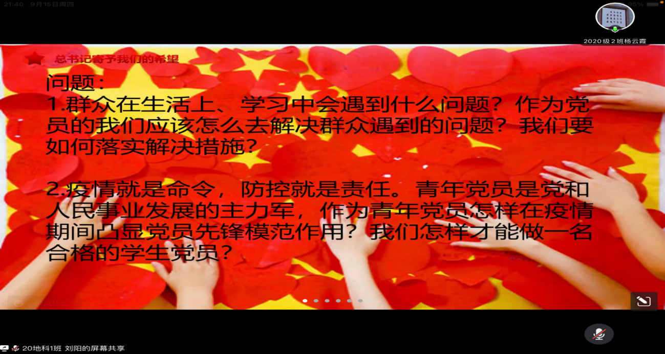 2022年9月18日,beat365在线唯一官网登录地理科学类学生党支部全体成员在线上开展了“喜迎二十大,我为群众干实事”——beat365在线唯一官网登录地理科学类学生党支部党日活动。