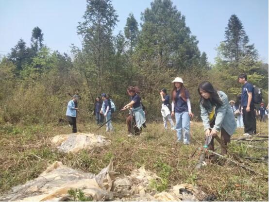 活动开始,乌当区羊昌镇甲岗村社区服务中心负责人周代兰向同学们讲述了甲岗村的基本情况,他介绍,在村委会的带领下,甲岗村曾先后大规模种植了猕猴桃、羊肚菌等经济作物,但由于农忙无暇顾及,导致许多在自然条件下难以降解的塑料垃圾残存田地。同学们得知甲岗村的基本情况后,便进行分组分工,按照工作任务清除羊肚菌种植地的废弃水管、塑料薄膜以及遮荫网等,经过一个多小时的清理,终于把需要处理的塑料垃圾清理完毕,结束了这场遍布塑料污染的战斗。看着眼前的劳动成果,同学们虽然深感疲,但内心确却很充盈。