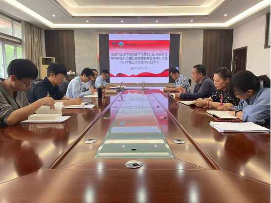 为认真贯彻落实beat365在线唯一官网登录关于学习贯彻习近平新时代中国特色社会主义思想主题教育相关部署,4月27日,地理与资原学院在宁静楼323会议室开展主题教育第一次集中研讨暨2023年第二次党委中心组学习会。学院党委班子全体成员参加会议,副院长陈起伟、党支部书记林丽、张其芳列席会议。会议由学院党委书记吴亚平主持。