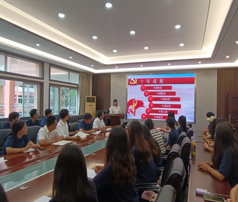 韩默然聚焦党的十八大以来具有代表性的基础设施建设和科技创新重大成果,从中国跨度、中国精度、中国高度、中国深度、中国力度、中国速度等六个维度讲解了我国十年来各区域各行业的发展成果。让同学们深感当代中国,江山壮丽,人民豪迈,前程远大,新时代中国青年应将以永不懈怠的精神状态、永不停滞的前进姿态,在接续奋斗中将中华民族伟大复兴的中国梦变为现实。