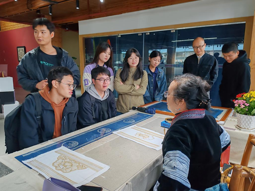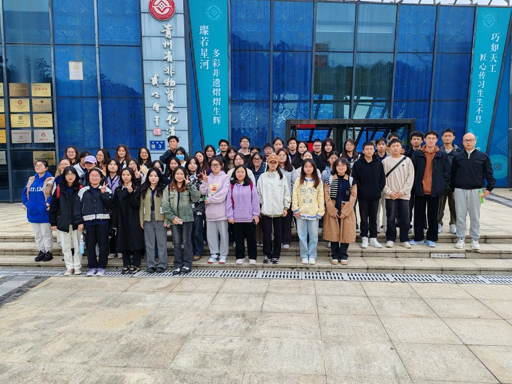 贵州非物质文化展览馆重点展示贵州非物质文化遗产的独特项目,是全国第一座省级综合类非遗馆。在展览馆工作人员的带领下,beat365官网师生有序参观展示厅、传承厅,全面了解贵州非物质文化遗产及其发展动态,认识人类非物质文化遗产的生产和发展规律及其与人类社会文明进步的关系。在非遗工坊,同学们争先恐后的与当日驻馆的两位国家级非遗传承人直接对话,学生们就自己感兴趣的问题进行访谈,了解非遗背后的故事,并积极实践部分非遗项目。
