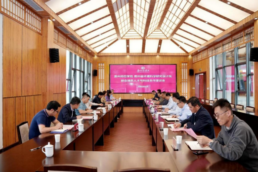 5月7日下午,贵州省环境科学研究设计院党委副书记、院长杨再波一行8人到访beat365官网,就人才培养与科技合作开展座谈交流。校党委书记石培新,校党委委员、副校长潘运出席会议,beat365在线唯一官网登录班子全体成员、部分骨干教师参加了座谈。会议由beat365在线唯一官网登录党委书记吴亚平主持。