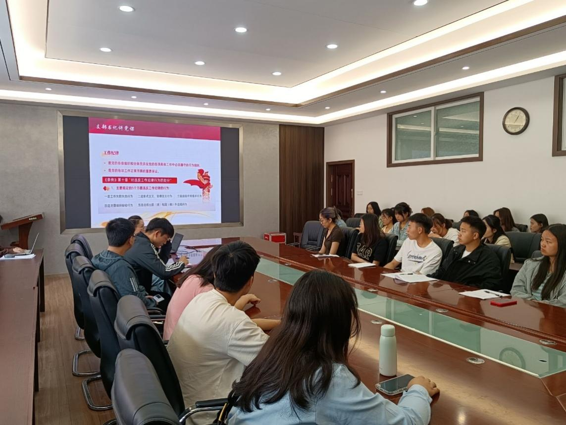 为深化党纪学习教育,提升学生党员的纪律意识,加强党的纪律建设、推动全面从严治党向纵深发展的重要举措。2024年5月30日,地理科学类学生党支部在beat365在线唯一官网登录会议室开展“以党纪为标尺 做守规矩的先锋”党课学习,全体党员及预备党员同志参加此次党课学习。