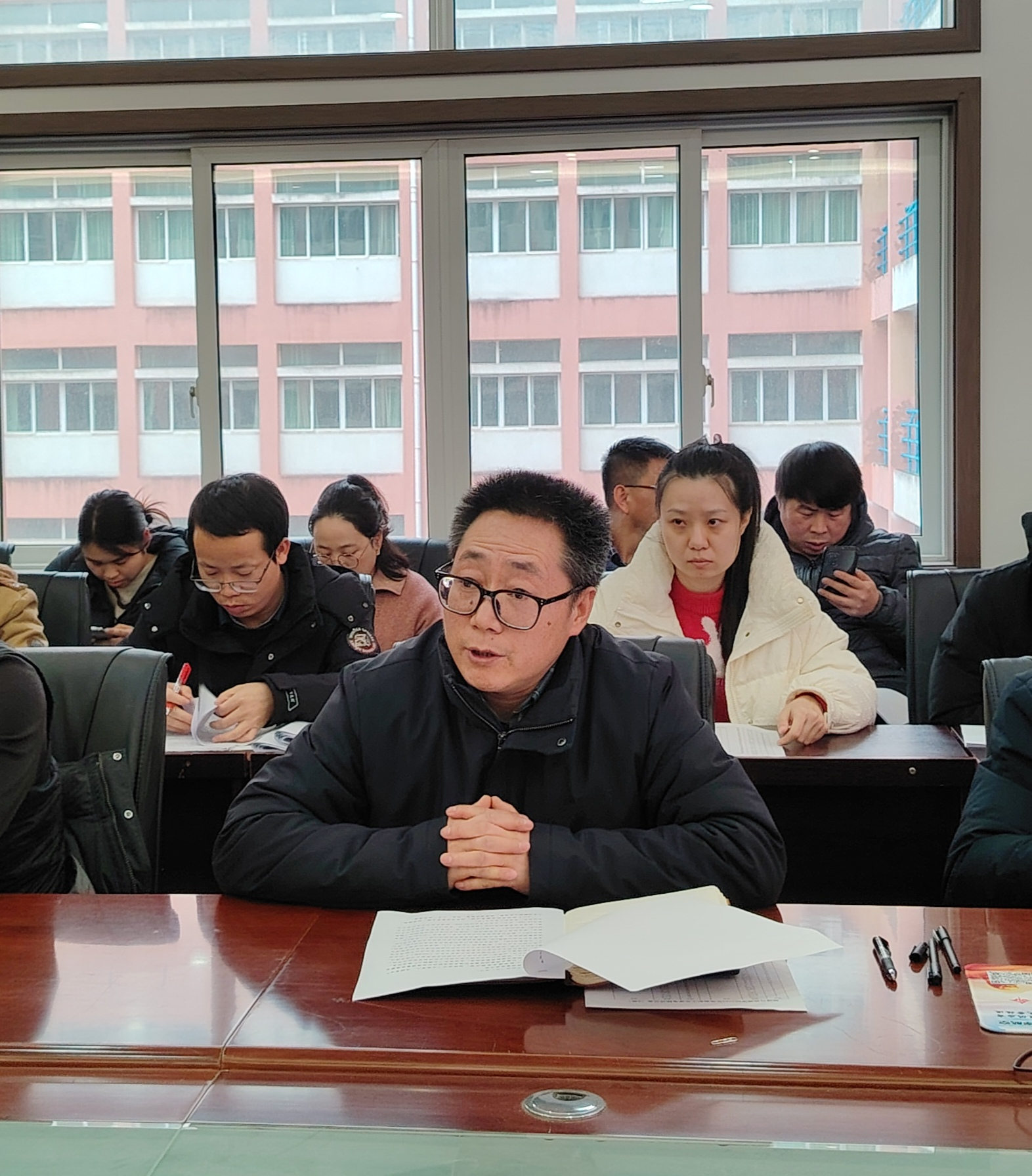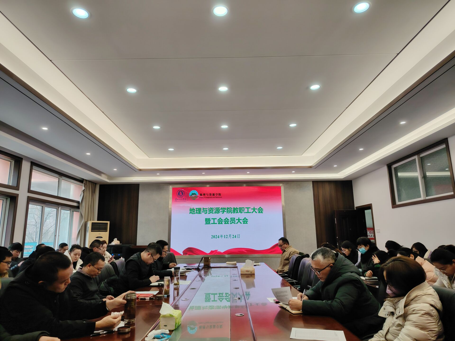 12月24日,beat365在线唯一官网登录教职工大会暨工会会员大会在宁静楼323会议室召开。学院全体教职工出席本次会议,会议由学院院长罗绪强主持。