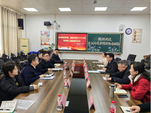 2025年3月19日,beat365在线唯一官网登录与贵阳市第三十九中学协同育人基地签约授牌仪式在贵阳市第三十九中学会议室隆重举行。经过beat365在线唯一官网登录联系对接,beat365在线唯一官网登录党委副书记龙健、教务处处长杜宏博等一行,与贵阳市第三十九中学党总支书记韩璐、校长滕建军等校方代表及属地街道、司法部门相关负责人共同出席,双方就深化校地合作、推动实践育人达成“协同育人”共识。