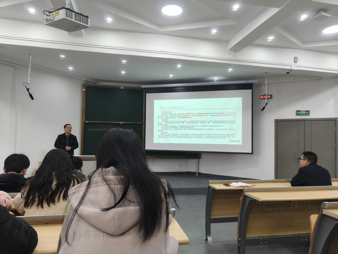 王万强系统解读了西部计划政策及报名流程,为毕业生提供了重要的就业选择方向。他结合当前就业形势,向毕业生提出“先就业再择业”的务实建议,强调要正确认识就业形势,主动转变就业观念,鼓励毕业生积极参加各类招聘会,在不断尝试中找到适合自己的岗位,在实践中明确职业自身的发展方向。