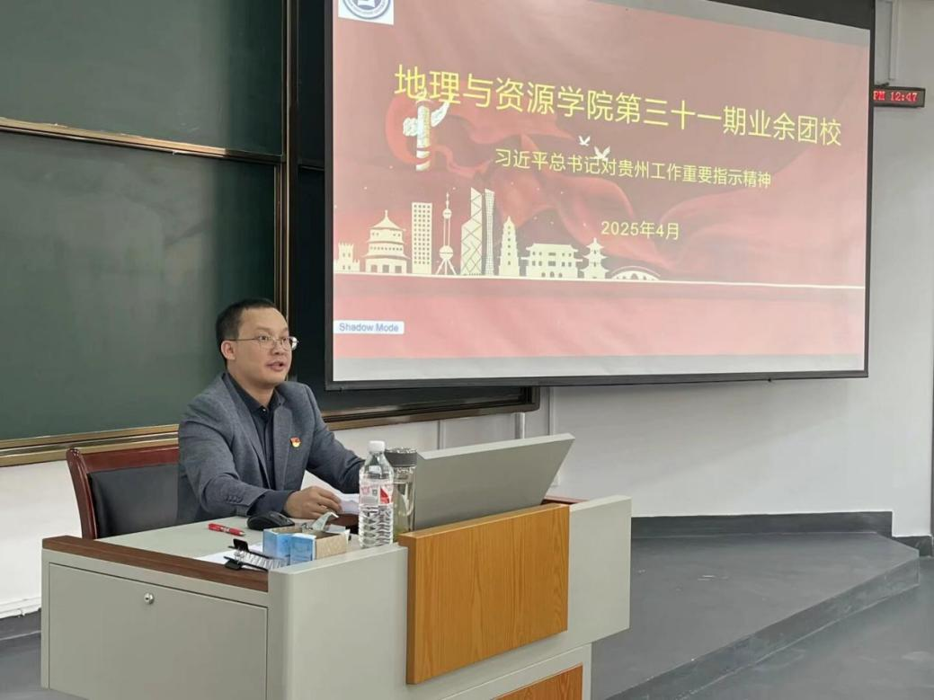 课上,王万强向青年大学生传达了习近平总书记在贵州考察时的重要讲话精神,他从坚持以高质量发展统揽全局,到加强生态保护;从积极融入全国统一大市场,到扎实推进城镇化和农业现代化两个方面,深刻阐述了习近平总书记对贵州发展的殷切希望和战略部署。他强调,青年团员应积极学习、深刻领会,将讲话精神转化为实际行动。交流讨论环节,学员们纷纷表示,作为一名共青团员,要勇担时代责任,在学生群体中树立积极向上的榜样,发挥示范引领作用,努力成长为“模范表率、堪当重任”的新时代优秀青年。