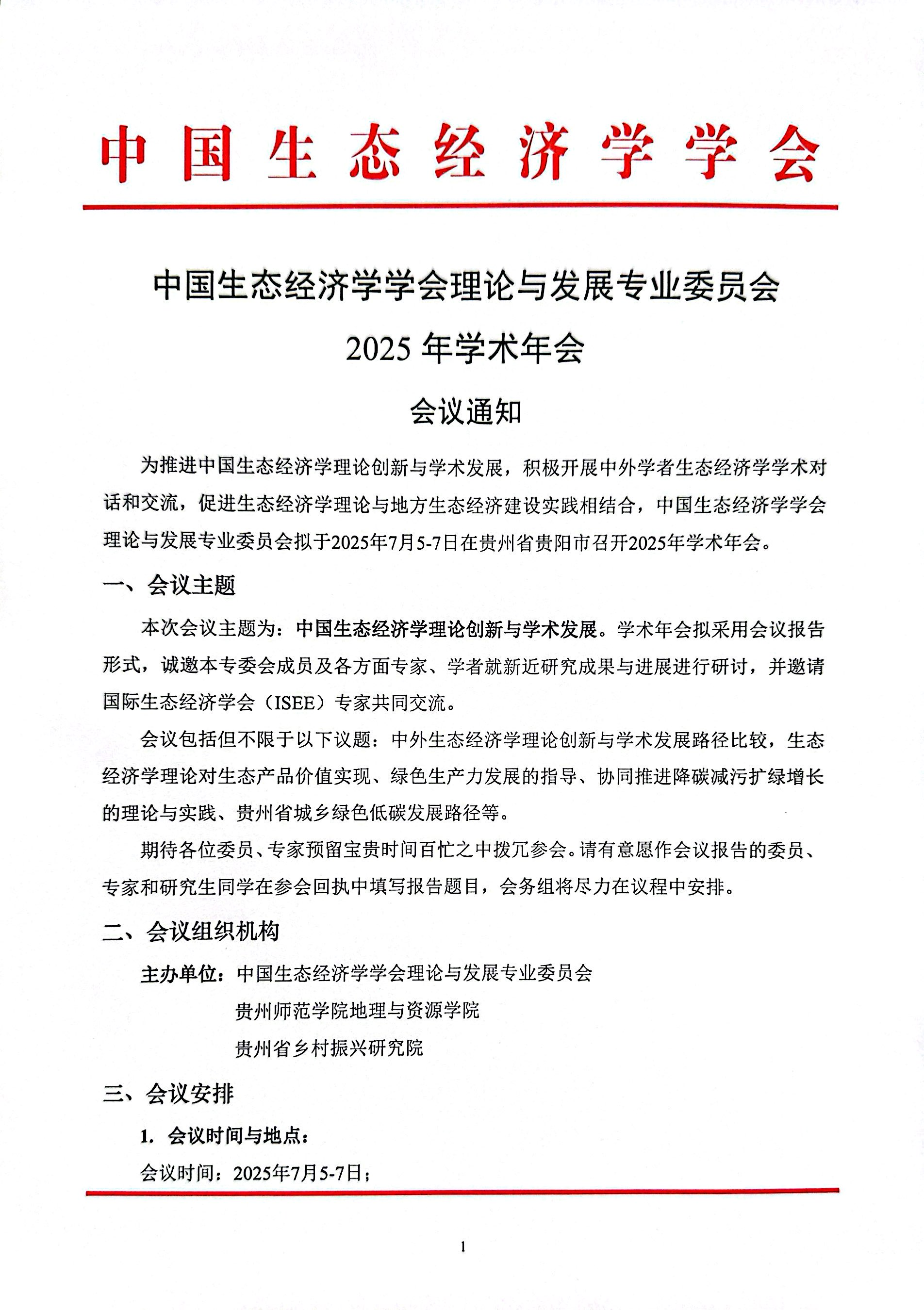 中国生态经济学学会理论与发展专业委员会2025学术年会会议通知