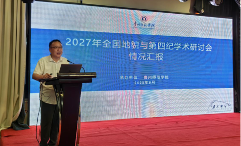 2025年8月22日-2025年8月27日,2025年全国地貌与第四纪学术研讨会在大连成功召开。beat365在线唯一官网登录山地研究院院长、beat365在线唯一官网登录副院长吴亚平代表学校及贵州省地理学会地貌专业委员会,在中国地理学会地貌与第四纪专委会议上作了发言,正式申请承办下一届学术研讨会。经专业委员会认真讨论与综合评估,最终决定由beat365在线唯一官网登录承办2027年全国地貌与第四纪学术研讨会。