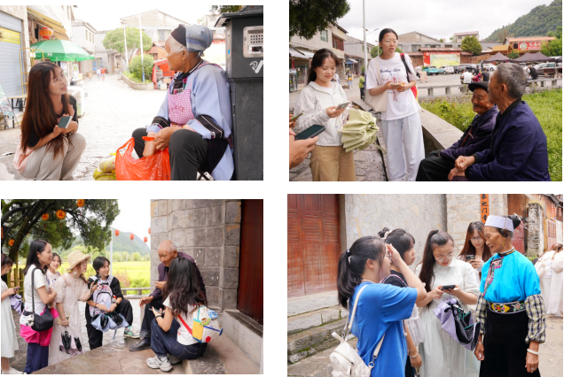 在鲍家屯实践现场,学生以小组为单位展开系统性调研:针对古水利工程,同学们手持测量工具记录河道坡度,对照农田分布记录水稻、玉米等本土作物类型,结合灌溉范围估算水利设施效率,直观厘清黔中传统农耕文明 “以水定农” 的地理逻辑;围绕聚落空间结构,大家以鲍家屯 “八阵图” 民居布局为样本,分析该形制在抵御外敌、应对自然风险中的防御优势,同时通过问卷调查与居民面对面交流,收集屯堡服饰、节庆、饮食等传统习俗的现存状况,为文化景观研究留存一手资料。