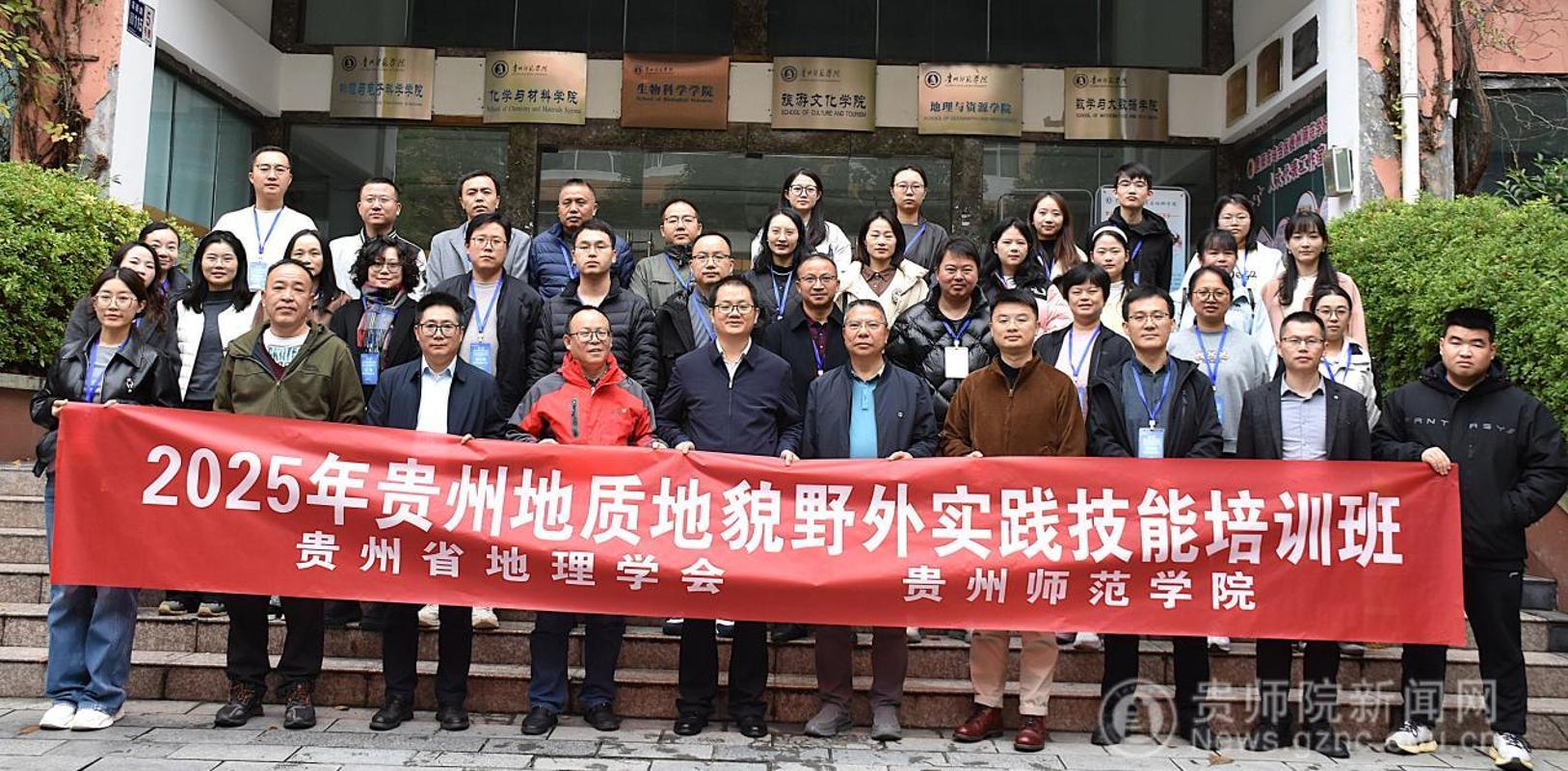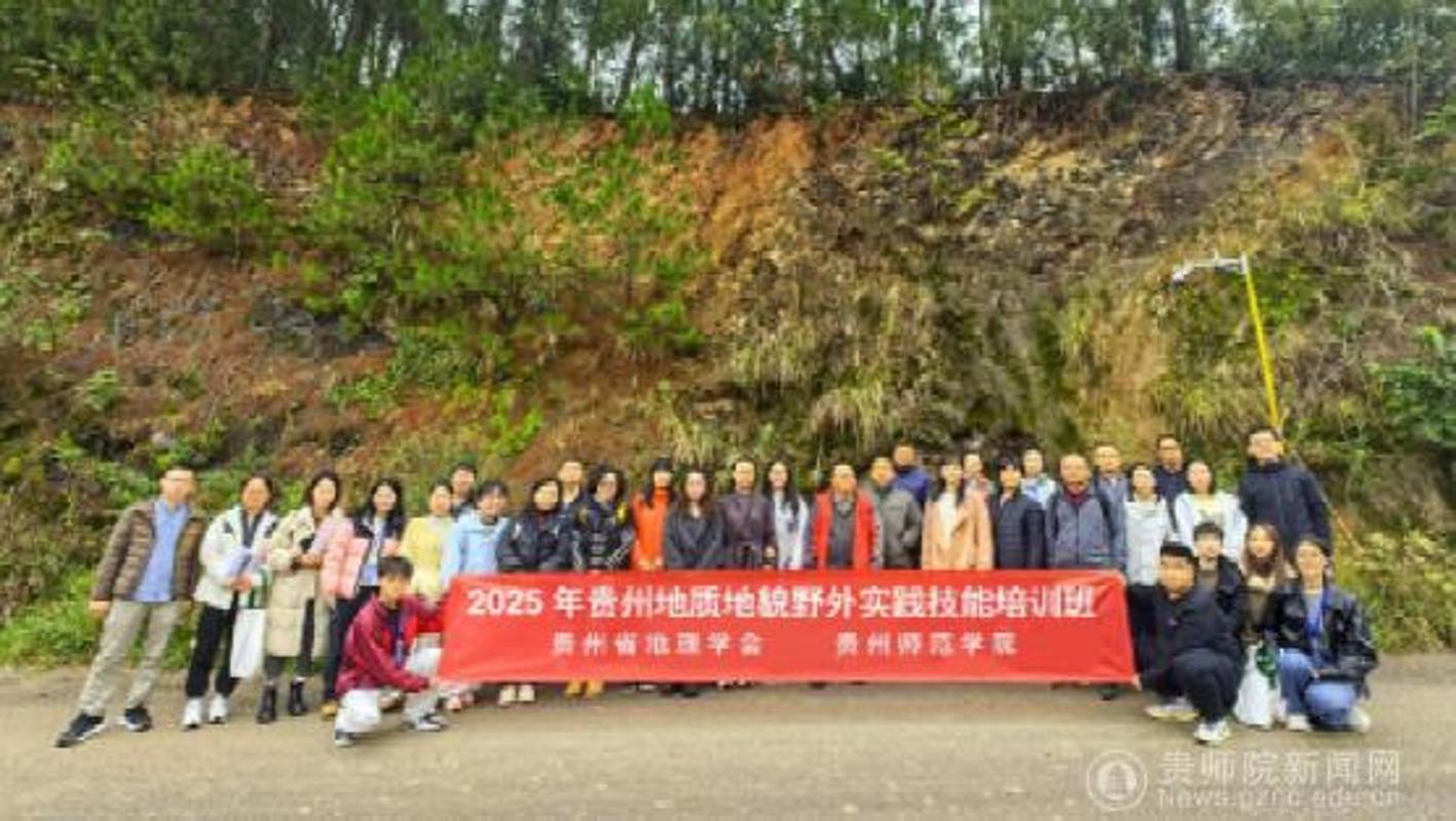 本网讯:11月1日-2日,由贵州省地理学会地貌专业委员会主办,beat365在线唯一官网登录、贵州山地研究院共同承办的“2025年贵州地质地貌野外实践技能培训班”在beat365在线唯一官网登录成功举办。本次培训旨在增强师生对贵州独特地质地貌形成机制及演变规律的认识,促进理论与实践的深度融合,提高地理学科人才培养的质量并推动学科的创新发展,共吸引了来自贵州大学、贵州师范大学、beat365在线唯一官网登录、黔南民族师范学院、安顺学院、贵州省地矿局、贵州省地质环境监测院、贵州省山地资源研究所等高等院校、科研院所,以及贵阳一中、贵阳八中、实验二中、乌当中学、遵义南白中学等省内重点中学的40余名从事地理学研究的科研工作者、中学一线教师和在读研究生参加。