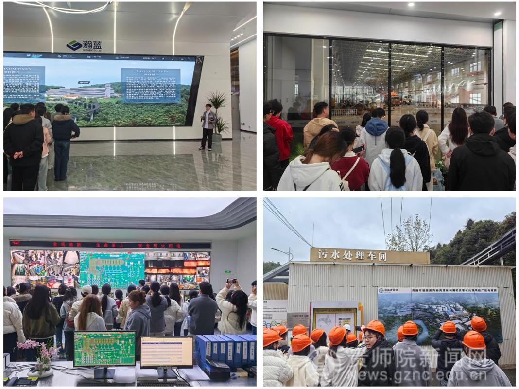 师生团队抵达贵州省首座AAA级生活垃圾焚烧厂——瀚蓝(贵阳)固废处理有限公司。该厂2022年9月投产以来,日均处理贵阳市四区三县生活垃圾2000吨,年处理量超80万吨。师生们先后参观垃圾预发酵车间、起吊操作室、中央控制室,直观感受“垃圾分类-焚烧发电-废气净化”全流程。在中央控制室,企业技术人员详细讲解焚烧温度控制、二噁英抑制等核心技术,并展示实时监测数据平台。企业展厅内,“和谐共生”的环保理念墙与变废为宝展示区,让学生直观体会到固体废弃物处理和循环经济的实践价值。