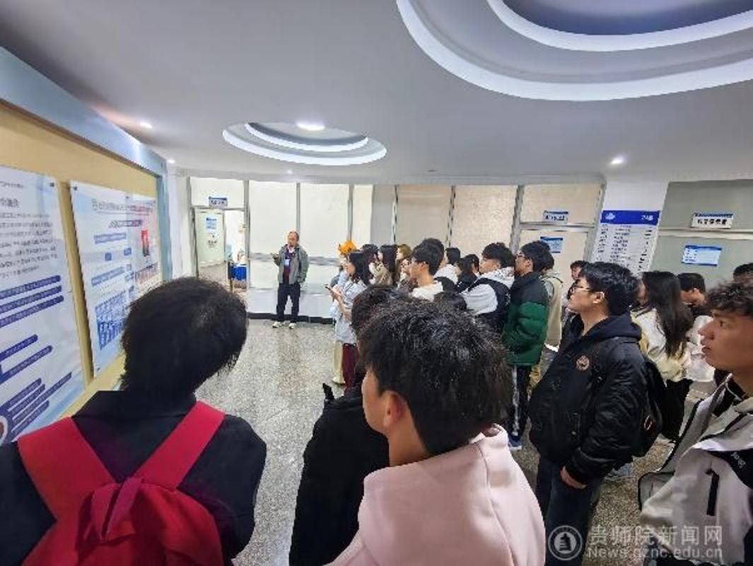 依据分组交叉参观考察的安排,学生们分批次走进贵州省地质博物馆与地质矿产中心实验室。地质博物馆作为省级自然资源科普基地,馆藏丰富,学生们通过观察古生物化石、矿物晶体等标本,直观感受地质历史演化与资源形成过程,深化对自然资源稀缺性、生态过程等理论知识的理解。地质矿产中心实验室具备岩矿鉴定、环境监测等资质,学生们实际操作偏光显微镜、X射线衍射仪等设备,掌握岩矿鉴定流程与环境监测技术,强化理论与实践结合。