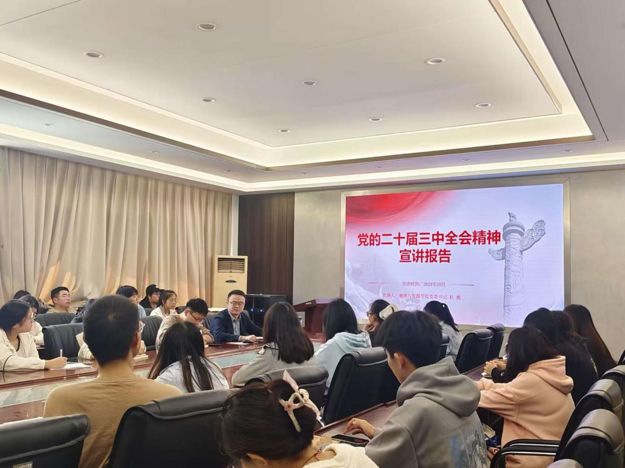 2024年10月18日中午,beat365在线唯一官网登录党委书记杜彪,在beat365在线唯一官网登录会议室,为师生宣讲党的二十届三中全会精神。