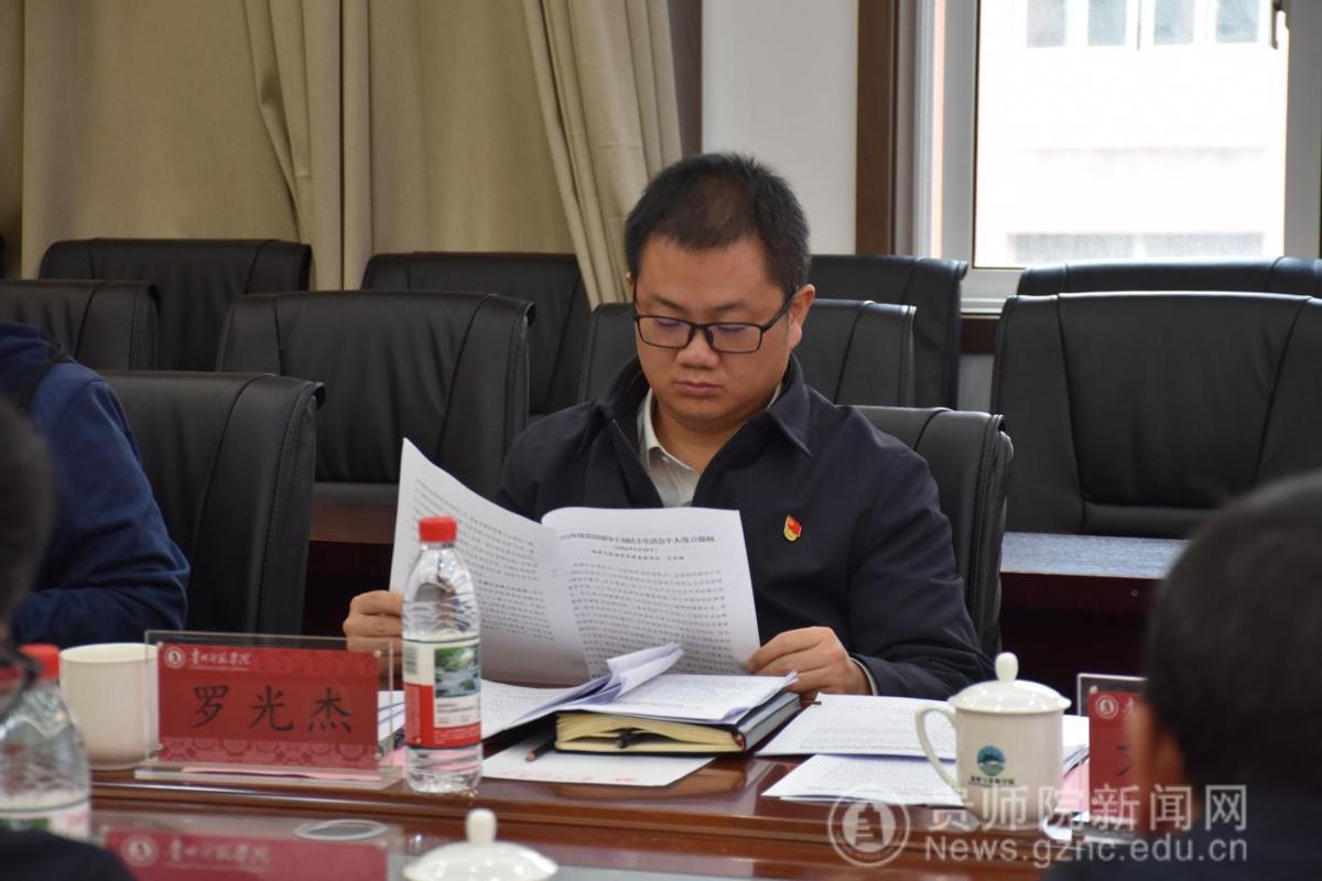 校党委常委、副校长罗光杰作点评讲话,校党委第八督导组有关同志到会指导。校党委委员、学院院长、党委副书记罗绪强主持会议并作总结讲话。