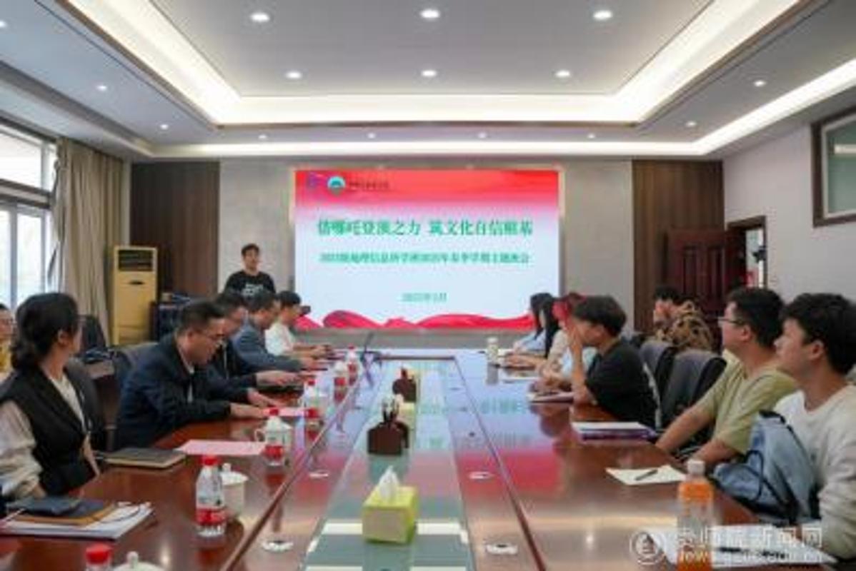 本网讯,为筑牢大学生文化自信根基,激发大学生自信自强的精神力量,促使文化自信种子在广大青年心中生根发芽,开花结果,3月27日,2023级地理信息科学班在宁静楼323会议室开展文化自信主题班会。校党委副书记龙健教授出席指导并授课,校党委学工部部长何毅,校党委学工部副部长杨兴萍、官鹏飞,学院党委书记杜彪,学院党委副书记王万强,以及学院全体辅导员老师参加主题班会。会议由2023级地理信息科学班班长王新焕主持。