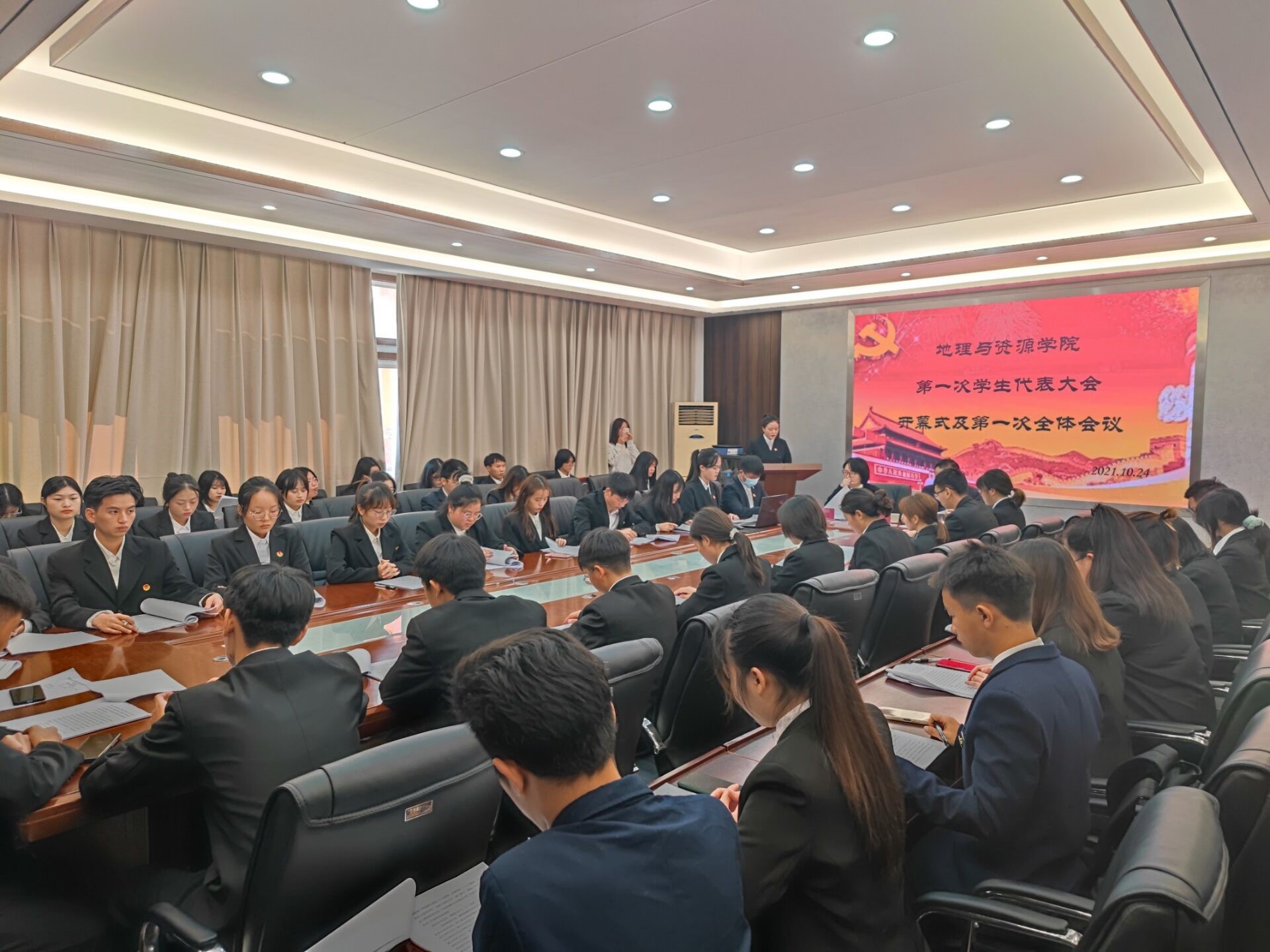 10月24日上午10点至10点30分,在宁静楼325召开了由王倩主持的预备会议。各学生正式代表听取报告人陈凤报告大会筹备工作报告(草案),通过了大会议程,代表资格审查情况(草案)等报告。由大会主席团通过各分团团长、副团长名单和大会议程。下午2点到4点30分,在宁静楼325召开了由王倩主持的正式会议,会议在奏唱国歌中拉开序幕。开幕式上,吴亚平对上届学生会的工作作出了肯定,也对下届学生会工作提出要求。淳淳话语、殷殷嘱托,鼓舞人心、催人奋进。紧接着,在六次分会议后,选举产生了第一届学生委员会和第一届学生会主席团成员。大会结束后,各正式代表通过学生会工作报告的决议,并全体奏唱校歌。至此,beat365在线唯一官网登录第一次学生代表大会圆满落幕。